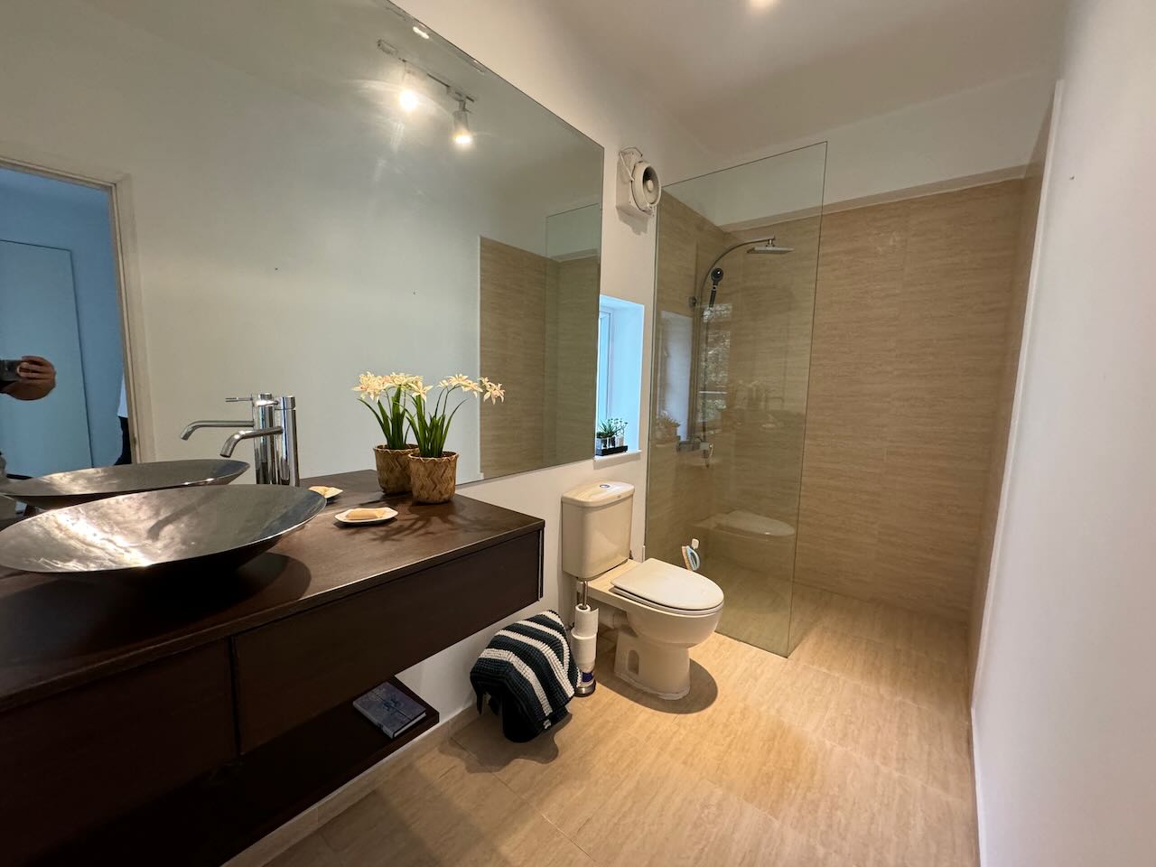 - Designer bathroom fittings, rain showers, full wall mirrors, custom-made cabinets